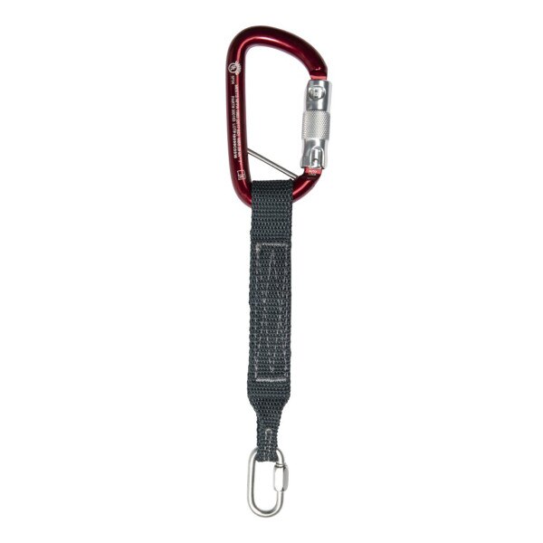 Designed to connect a device for descent control to your personal harness or safety belt. For flame resistance and high heat protection this escape tether is made from Kevlar® brand fiber web. ProTech Manual-Lock Carabiner with Keeper Pin and stainless steel Oval Quick Link (5 mm) included.