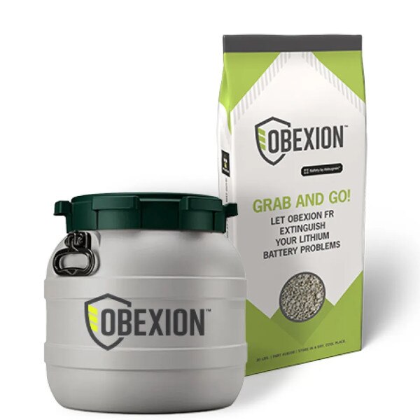 By utilizing Akkugrain® technology, the 42 Liter Obexion FR System combats fires on all fronts, addressing the critical elements of heat, oxygen, and fuel that sustain combustion. Unlike sand, dirt, or vermiculite, Obexion FR helps reduce toxic gases, minimizes re-ignition risk, and provides scalable coverage for various battery sizes—from cell phones and laptops to power tools and e-bikes.