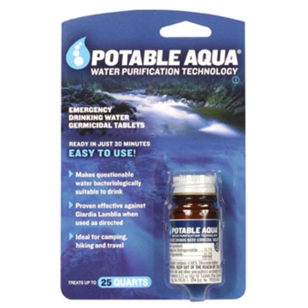 Great for campers and preppers and can easily fit inside your Bug Out Bag the Potable Aqua Water Purification Tablets a makes questionable water bacteriologically safe.