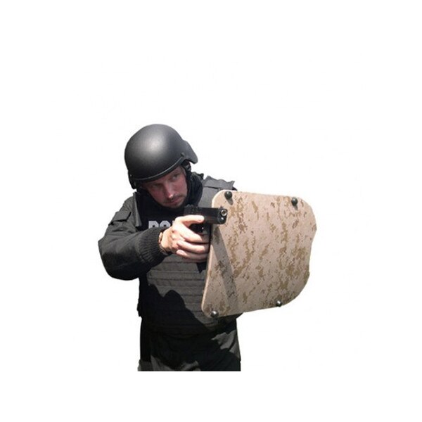 The United Shield Military Combat Shield is a highly maneuverable micra shield, which is lightweight, weighing just 2.7lbs, and is ergonomically designed to ensure maximum protection in all tactical situations. The shield has an integrated weapon mount, allowing one handed operation of riles and hand guns.